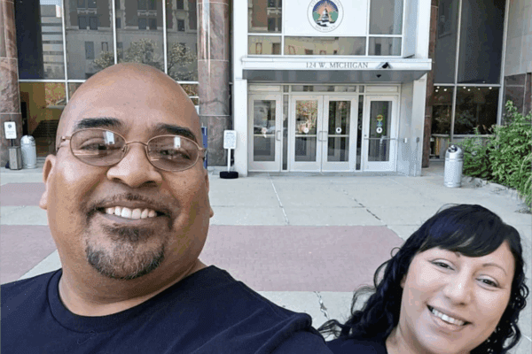 Photo: Elias and Melinda Williams on a recent visit to Lansing 54-A District Court to help a client navigate the…