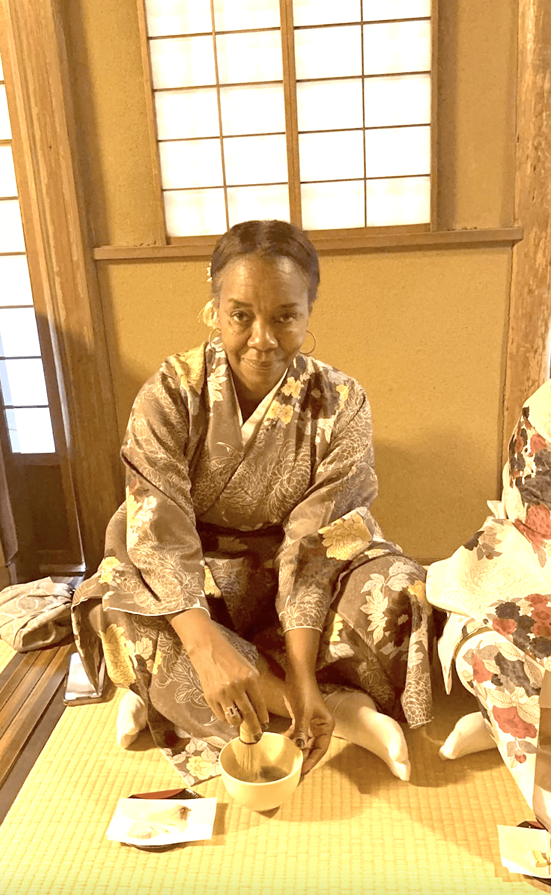 Patricia Spitzley during a recent trip to Japan participating in a kimono tea ceremony at Maikoya Kyoto where she enjoyed making authentic matcha.