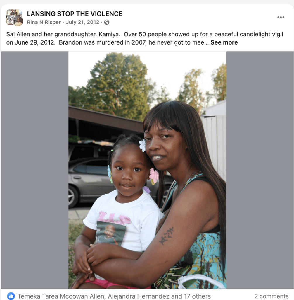 Over 20 years later on June 30, 2007, 17-year old, Brandon Williams, was gunned down outside of his apartment. During an interview at that time with WLIX Channel 10 News, his mother Sonya Allen said that everybody loved Brandon and that he was a fighter who was not given a chance. Every year since the murder, the family gathers at 3900 block of Burneway Drive where he shot and killed. Witnesses of the shooting told Allen that the shooter was not a familiar face in the neighborhood.